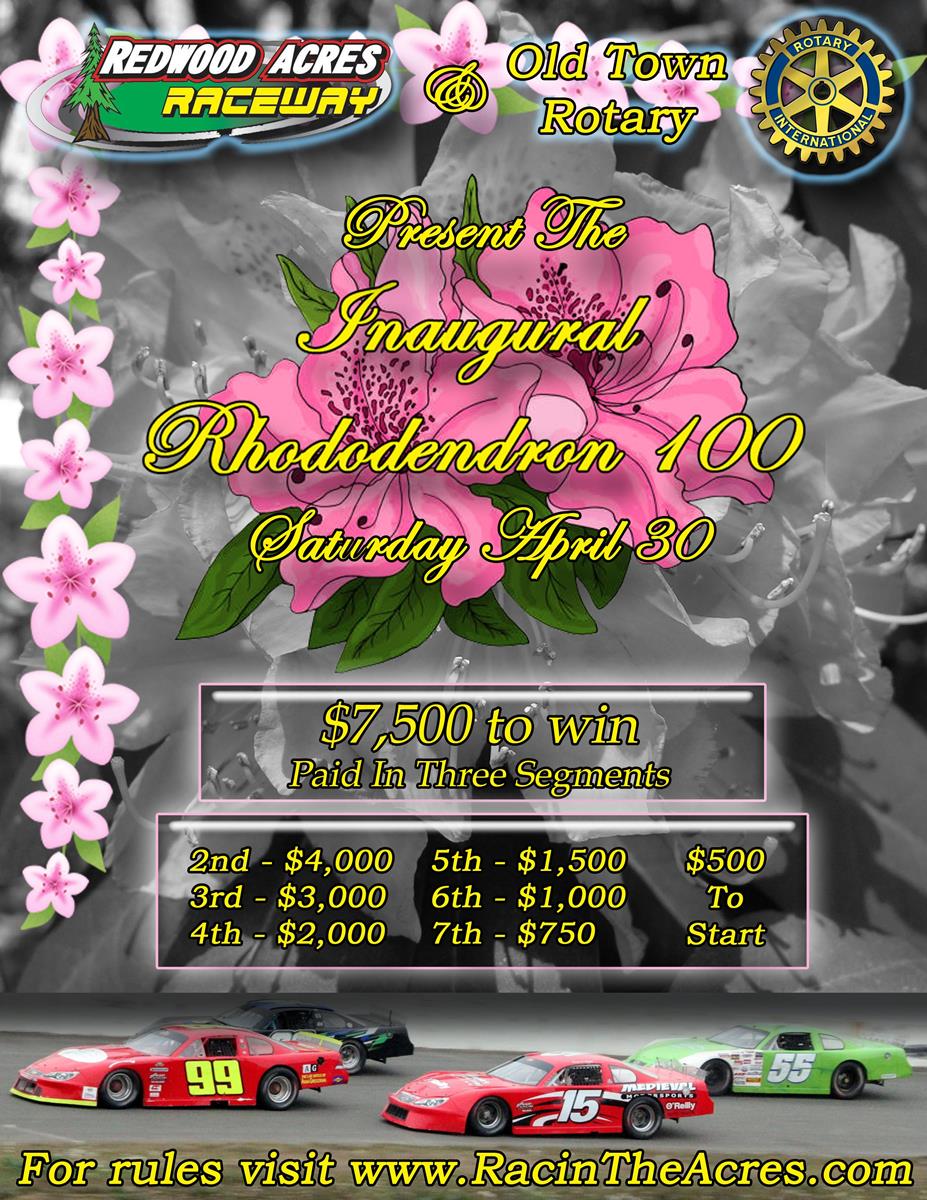 Redwood Acres Raceway recently released the purse for the Rhododendron 100 on Saturday April 30. The 100-lap race for the late models will be the feature attraction for the season-opening event at the 3/8-mile paved oval. Along with the late models, Legends, bombers, mini stocks and roadrunners will also race in what is sure to be a big event to kick off the 2022 season.