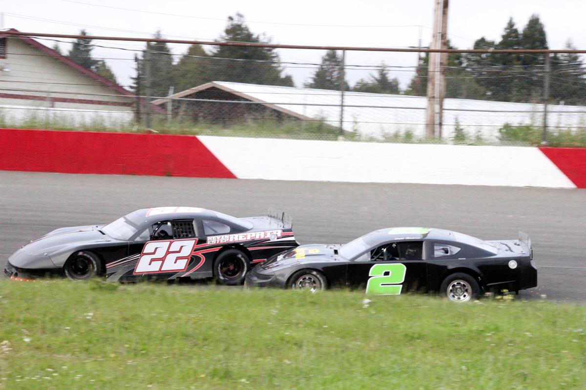 Legends division qualifying was led by Tyler Avelar with a time of 18.197. The heat race win was taken by Jordon Paiment. The highlight of the Legends feature was a battle for the lead between Avelar and Tyler Krupa. Avelar led for the majority of the race but the handling on his car appeared to fall off enough to the point where Krupa was able to challenge for the lead. Unfortunately, the two tangled in the late stages of the race ending their chances of winning. Paiment inherited the lead and was able to hold off young Maleesa Miles to take his first Legends division feature win. Krupa and Avelar recovered to finish third and fourth while Chris Sarvinski was fifth.